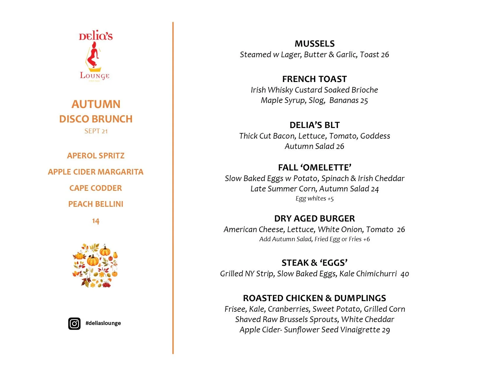 We serve traditional Brunch dishes, but strive to make our menu seasonal: